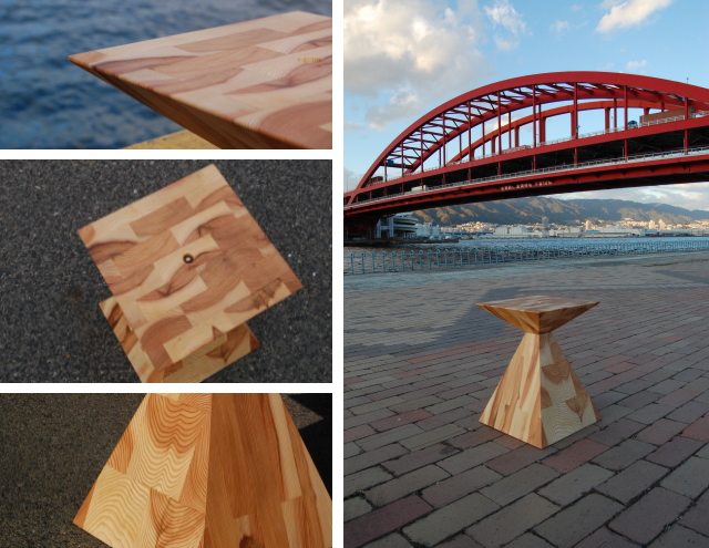 “プレスギ” 45o×120oの吉野杉板材のみで作ったスツール。